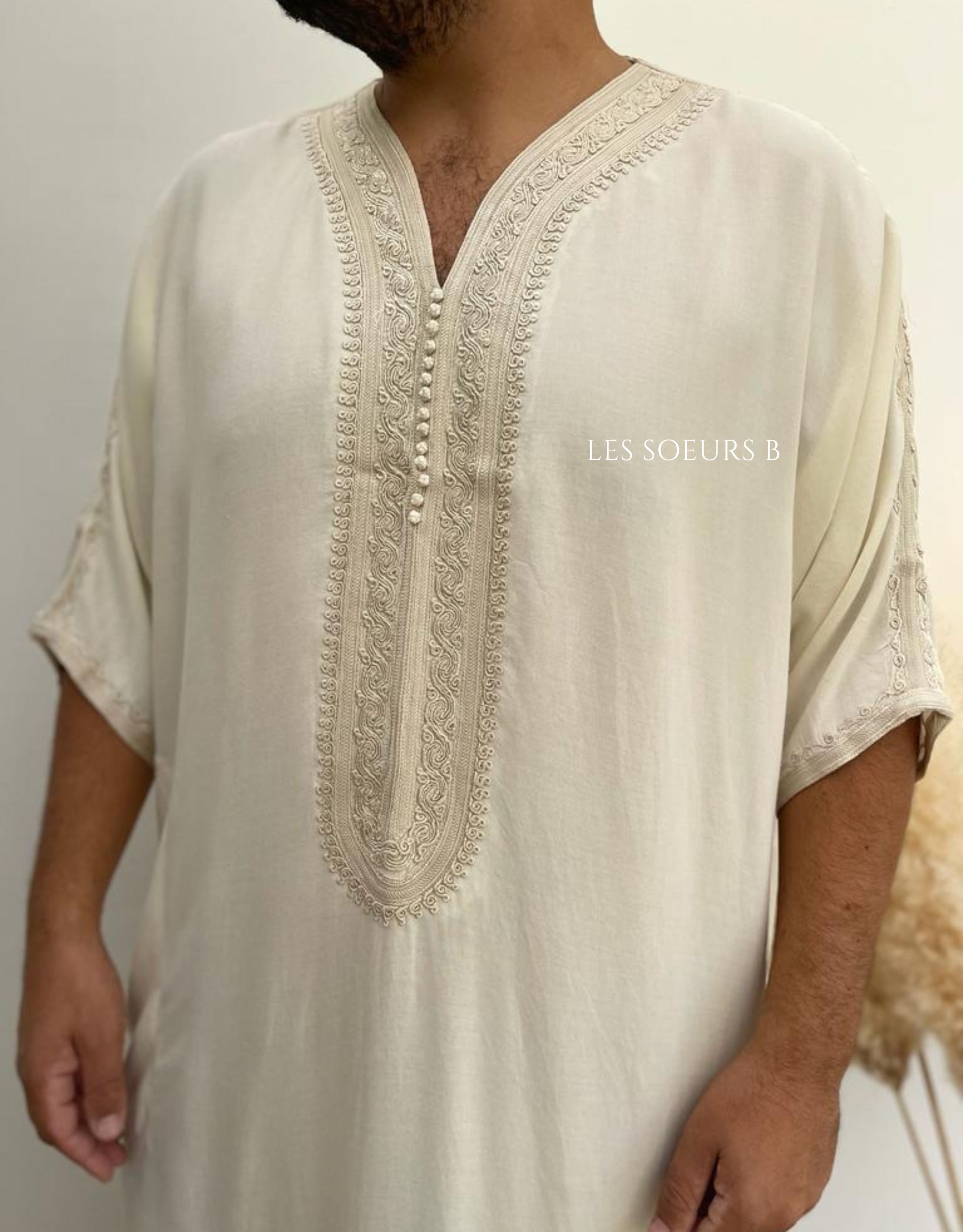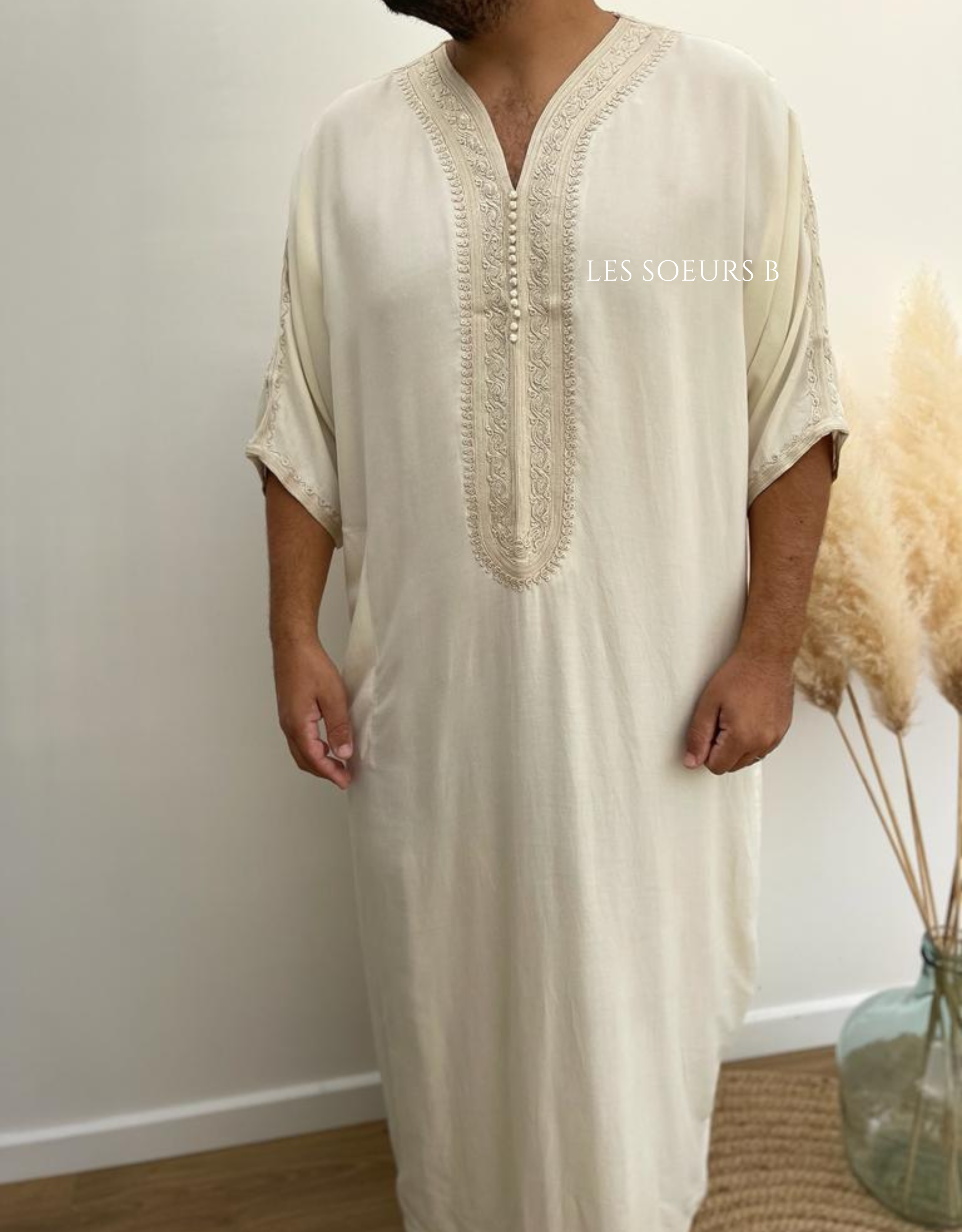 White abaya, one piece with side pockets. Unique size. 3/4 sleeve
