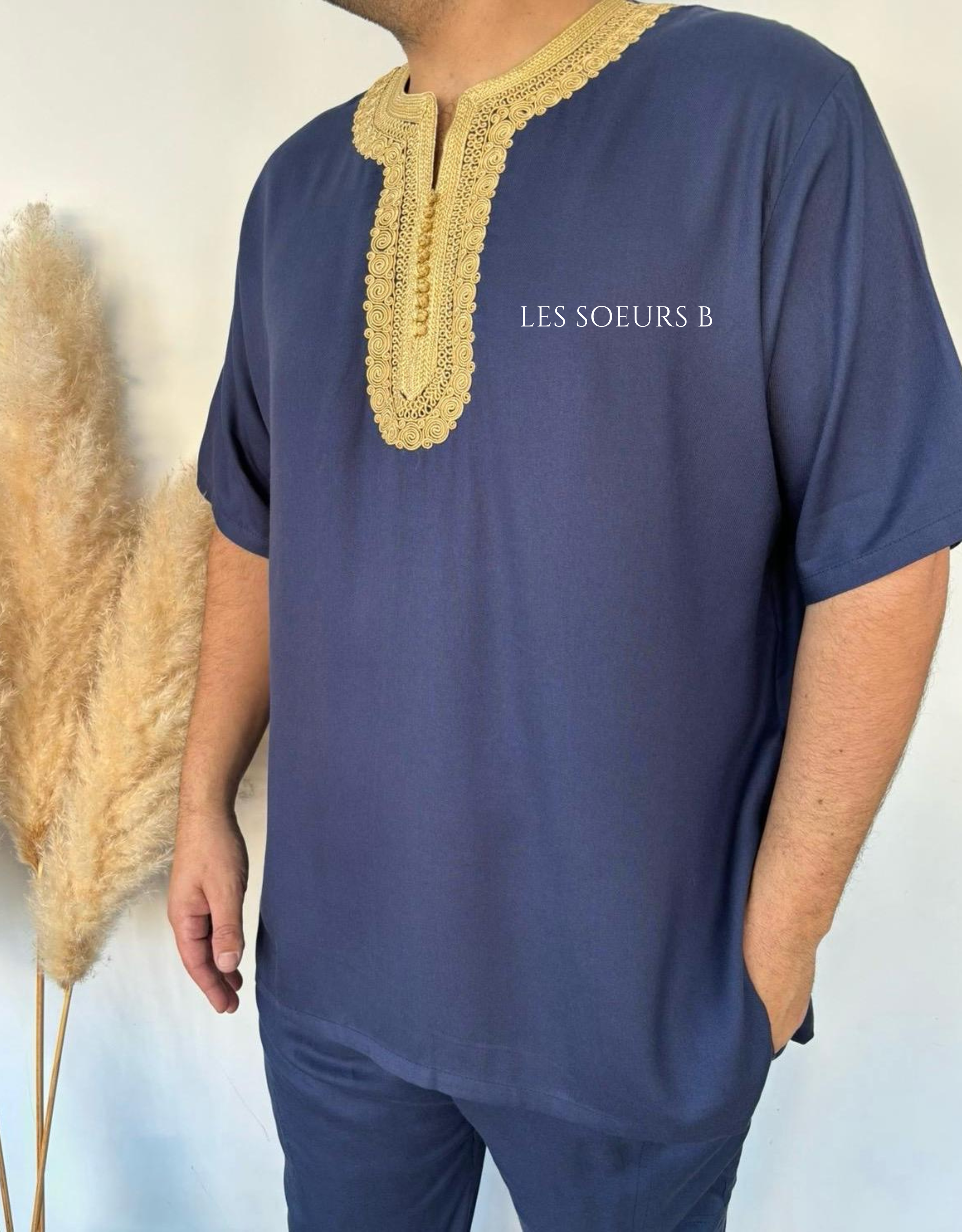 Jabador bleu marine avec la broderie dorée. Deux pièces. Manche 3/4.